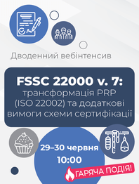 FSSC 22000 v.7: трансформація PRP (ISO 22002) та додаткові вимоги схеми сертифікації (дводенний вебінтенсив)